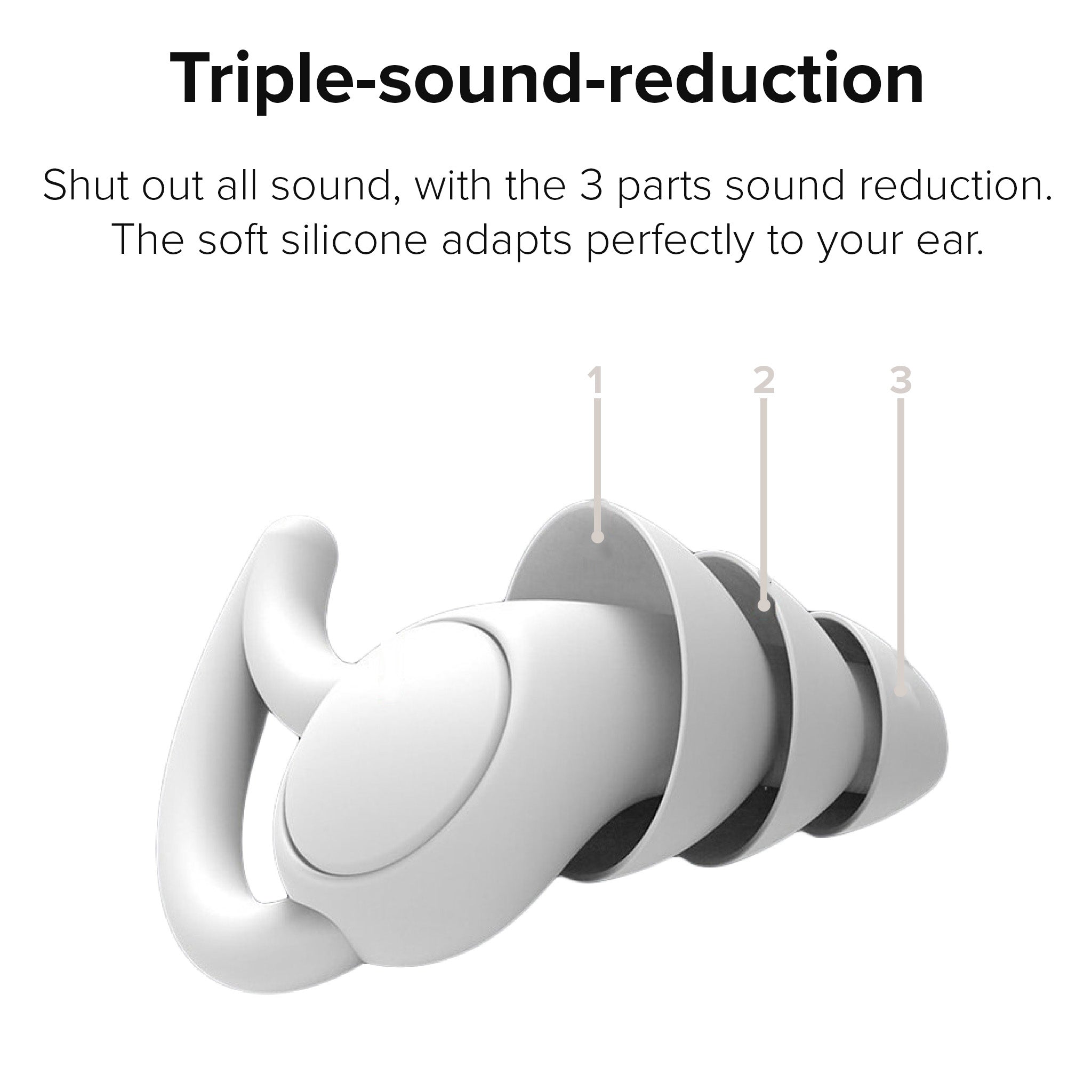 Vores ørepropper er lavet i et tredelte design, som skaber en robust væg af isolering mod omgivende lyd. Hver del arbejder harmonisk sammen for at sikre, at uønsket støj holdes effektivt ude, mens komforten bevares. Vores øreproppers bløde, men holdbare silikonemateriale tilpasser sig nemt til dit øres form, hvilket sikrer en tæt og komfortabel pasform. Og fordi de er hypoallergeniske, kan du bære dem hele natten uden bekymring for irritation eller ubehag.