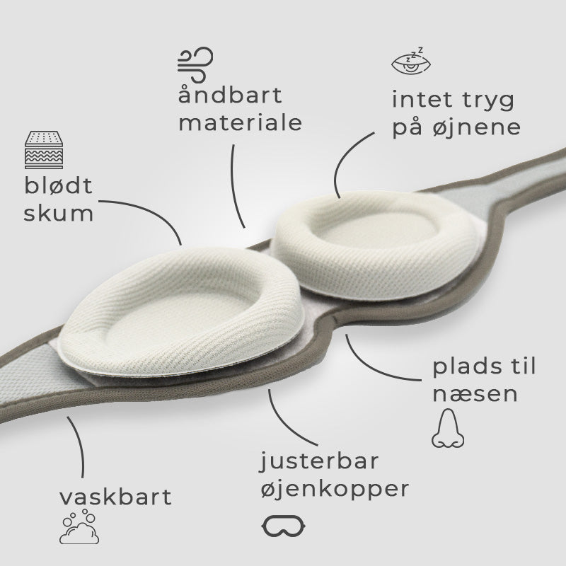 Verdens mest komfortable natbrille, med 100% mørklægning og tilpasning så den passer lige til dig. Hjælper dig med at få en dybere og bedre søvn.