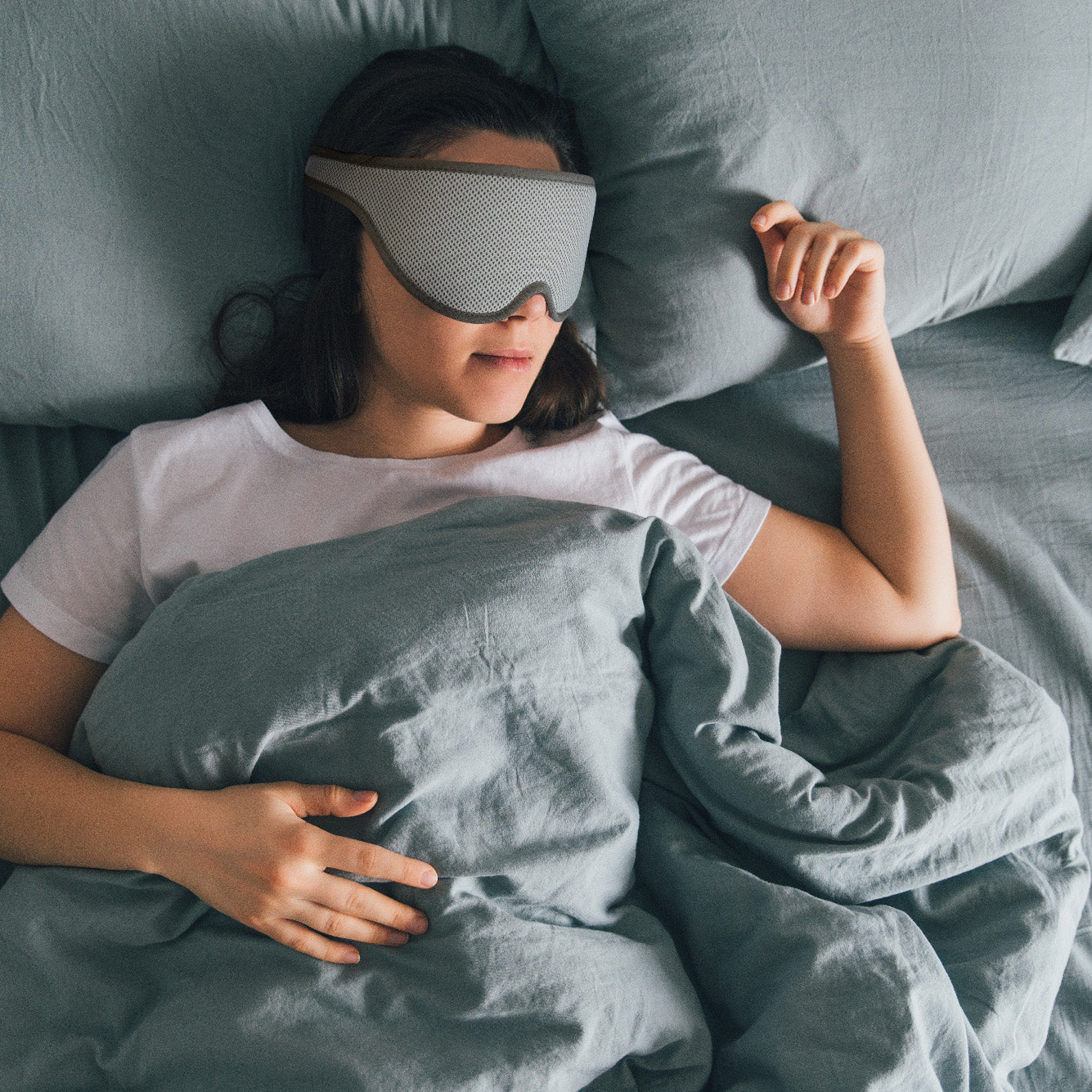 REM søvnmasken er designet for kompromisløs komfort og lavet med super bløde, åndbare materialer, der tilpasser sig dit ansigt uden at lægge pres på dine øjne. Den sikrer dig en dybere søvn, uanset om du ligger på ryggen, siden eller maven.